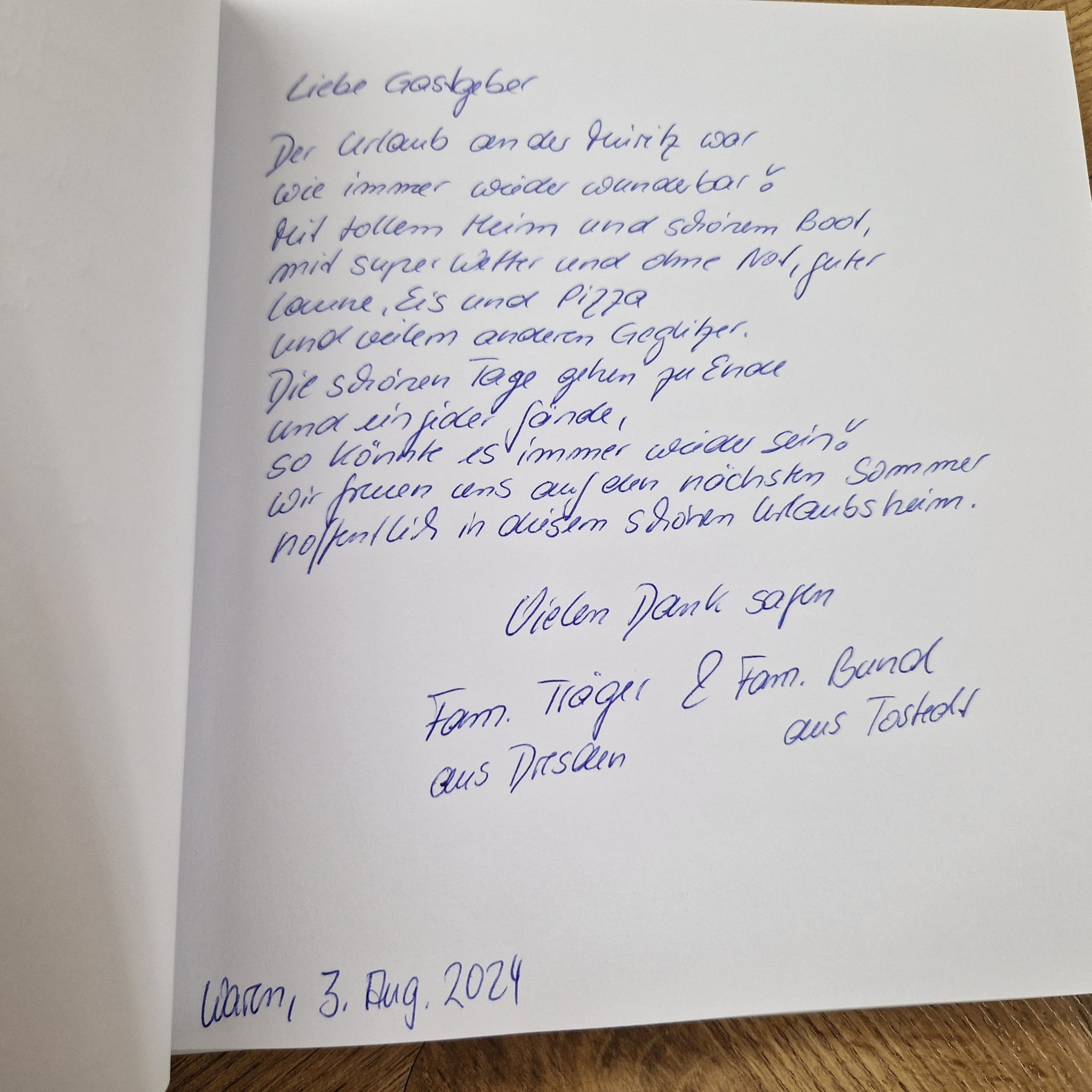 Natürlich freuen wir uns über einen Eintrag in unserem Gästebuch!